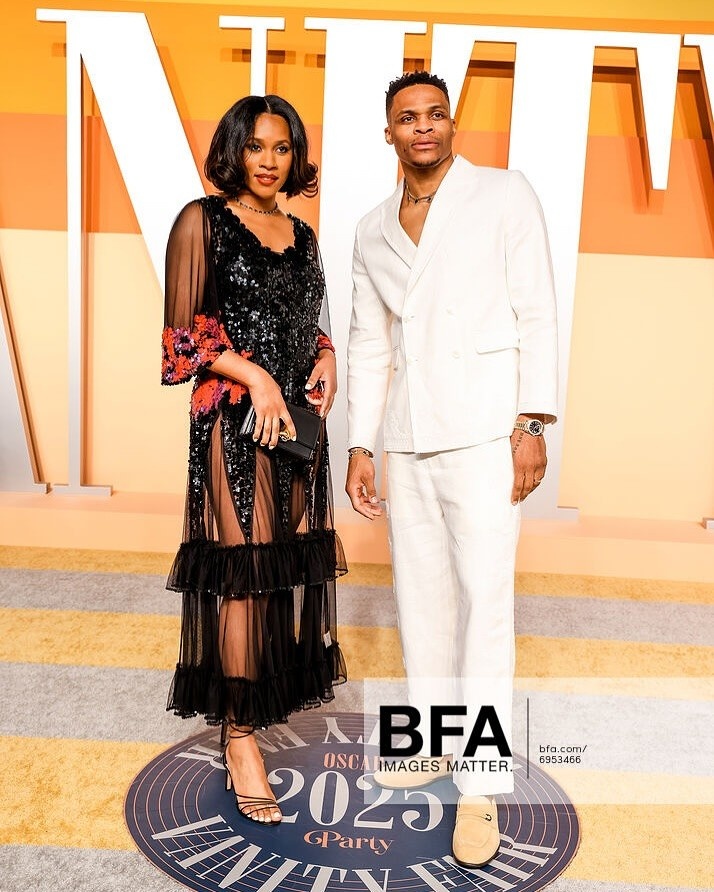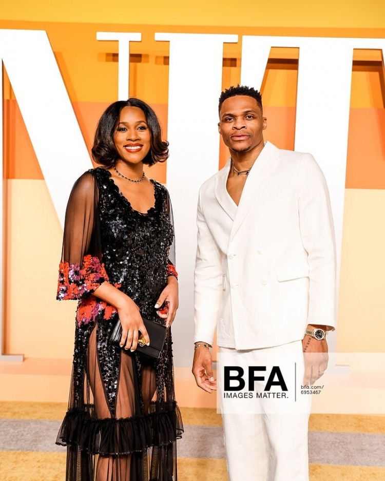 威少携妻子妮娜亮相奥斯卡名利场派对一身白色套装吸睛