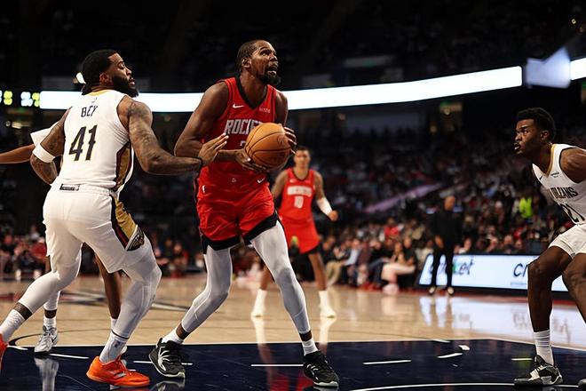 在上赛季的NBA常规赛中,杜兰特总共代表老东家菲尼克斯太阳出场62次,场均出场时间达到了36.5分钟,场均数据为26.6分6篮板4.2助攻0.8抢断1.2盖帽,还有3.1次失误和1.7次犯规,投篮命中率52.7%,三分命中率43%,罚球命中率83.9%。由于上赛季太阳的战绩一塌糊涂,球队的化学反应糟糕透顶,杜兰特在今年夏天被交易到了火箭。为了得到杜兰特,火箭不惜送出了杰伦-格林(Jalen Green)、狄龙-布鲁克斯(Dillon Brooks)和今年的首轮第10号签。