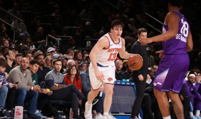 作为2024年次轮第4顺位被选中的科莱克,进入联盟的时候都已经23岁,不过作为一名身高只有1米88的白人后卫,人们对于他根本没抱有太多期待,毕竟次轮选秀中能得到像布伦森这样的球员,可不是每年都会出现。所以在开拓者队选中科莱克的时候,甚至他还没有打一场比赛,就被交易至了尼克斯队。