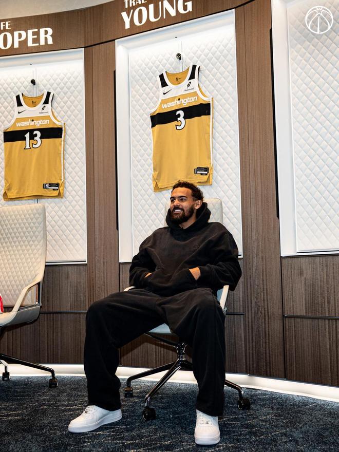 特雷-杨已经抵达奇才主场,虽然他因伤不会出战今天的比赛。他在更衣室里展示了自己的3号球衣。由于奇才的11号球衣已为埃尔文-海耶斯退役,所以特雷-杨选择换号。他也在社媒上发布了个人声明,这是交易消息曝光后他首次公开发声。