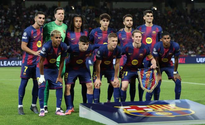 巴萨首发:25-什琴斯尼、5-库巴西、18-赫拉德·马丁、23-孔德、24-埃里克·加西亚、8-佩德里、20-奥尔莫、21-德容、14-拉什福德、10-亚马尔、7-费