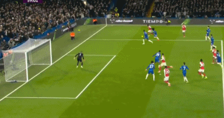 第88分钟,赖斯右路做球,梅里诺倒地射门,桑切斯扑救脱手,哲凯赖什飞身铲射,两人正面相撞,切尔西门神显得相当痛苦,双方爆发小规模冲突。