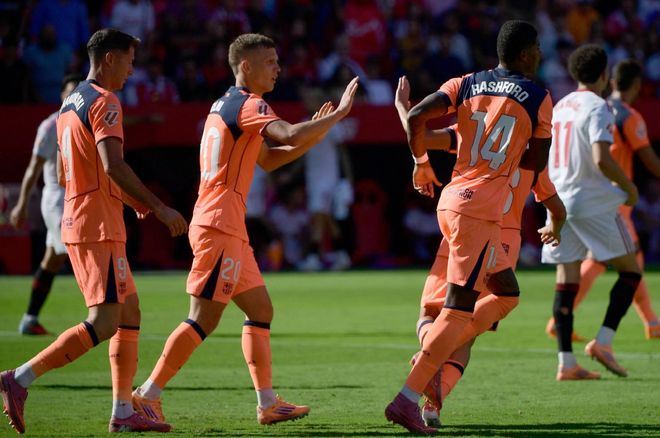 作为6届欧联杯冠军得主,塞维利亚因为财政原因,实力已经大打折扣,这几年都已经退居到了西甲中下游阶段。此战费兰-托雷斯、莱万和拉什福德组成前场进攻线;中场三人组是佩德里、奥尔莫与德容;赫拉德-马丁、阿劳霍、库巴西、孔德联袂后防线,什琴斯尼镇守球门。