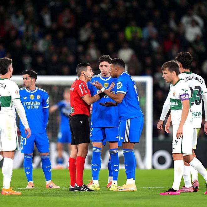 在周一凌晨进行的西甲第13轮比赛中,皇马客场2-2战平埃尔切,根据RMC Sports的最新报道,由于向裁判喊粗口,姆巴佩可能会被处罚。