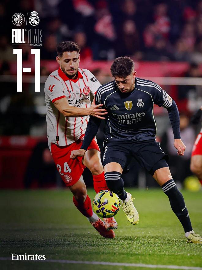 比赛结束,皇家马德里在客场战平吉罗纳,暂列西甲积分榜第二。