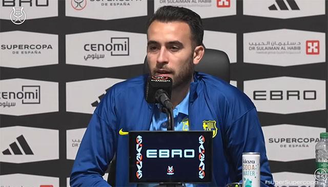 巴萨中卫埃里克-加西亚代表球队出席了西超杯决赛的赛前发布会,他谈到了参加世界杯的可能性,并表达了对皇马前锋姆巴佩的欣赏。