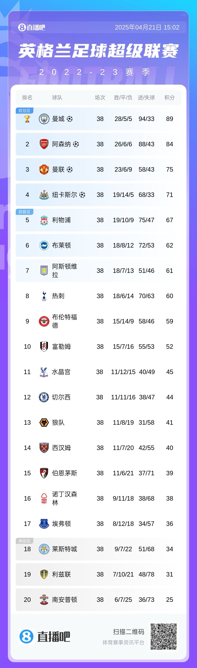 2022-2023赛季,曼联75分第3