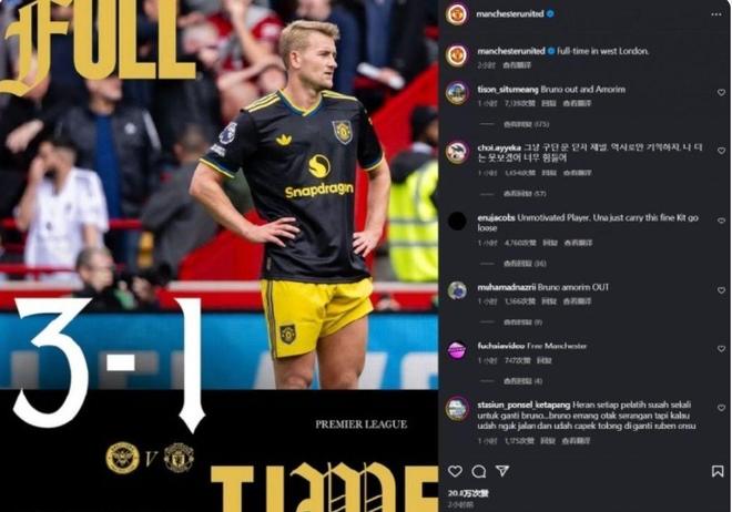 1-3,曼联耻辱地输给了布伦特福德,阿莫林黯然神伤,他不知道自己该怎么办了。6轮仅拿到7分,红魔追平历史最差纪录。赛后,曼联球迷纷纷在官媒评论区发泄怒火。