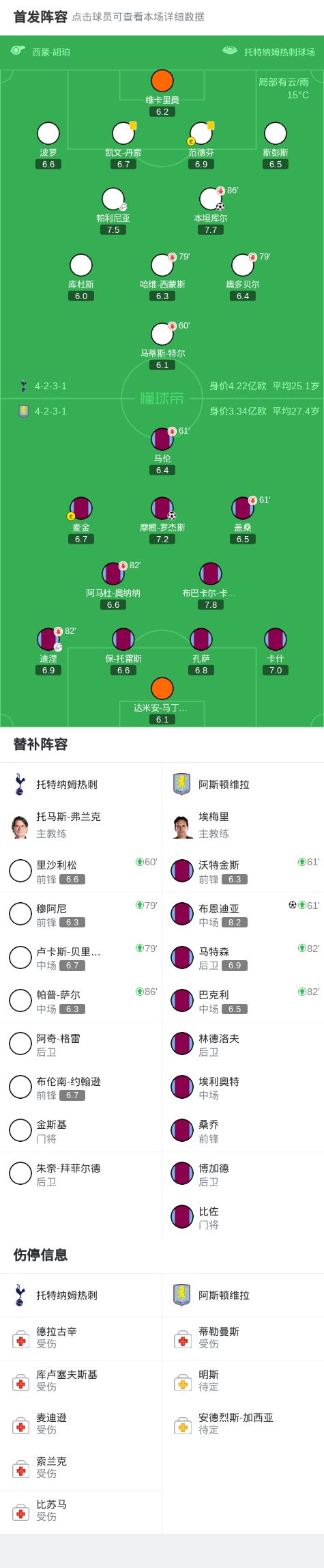 第78分钟,布恩迪亚远射破门,维拉2-1反超热刺