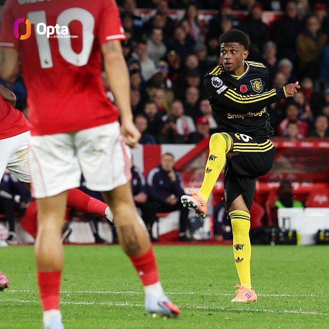 英超第10轮,曼联客场2-2战平诺丁汉森林,阿马德-迪亚洛在下半场打入扳平比分的进球,至此,阿马德-迪亚洛已为曼联在英超打入10球,10粒进球都是在下半场打进的。比赛第81分钟,阿马德-
