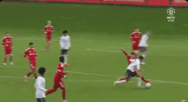 下半场开始后,加布里埃尔再次完成精彩的进球,这次他禁区前抢断后突破,甩开两人之后暴射上角入网,为曼联U18将比分改写为3-0。