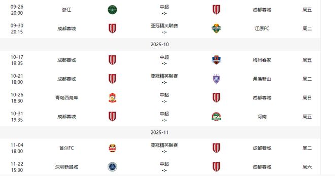 接下来以蓉城为对标对象,再来看看另外三队的赛程难度